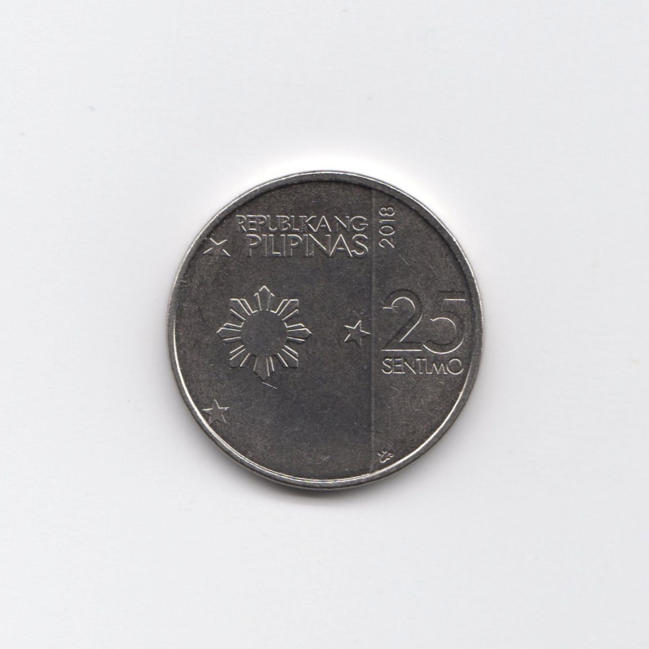 左 「REPUBLIKA NG PILIPINAS」「25 SENTIMO」「2018」。
