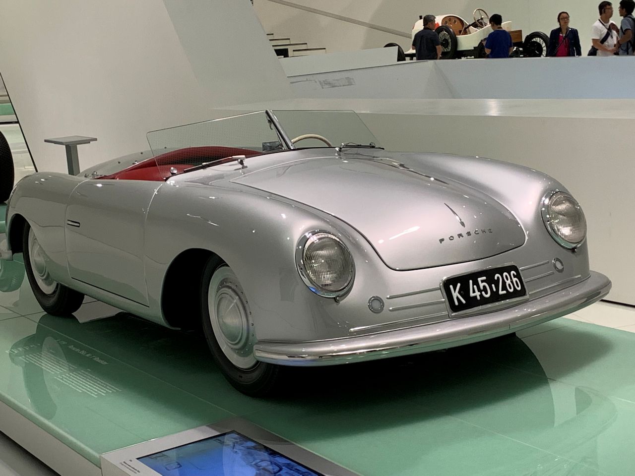 ポルシェ 356-001は、ポルシェを名乗った最初のクルマで、1948年に製作されたました。当初は、ビートルをベースとしたスポーツモデルとして企画され、フォルクスワーゲン スポーツと呼ばれていましたが、スイス人実業家の支援を受け、オリジナルモデルとして開発されることとなります。 鋼管フレーム、ミッドシップエンジン、アルミニウムボディーの2シーターで、エンジンはフォルクスワーゲン用の空冷水平対向4気筒OHV、1,131ccの369型エンジンで、ソレックス製キャブレターを2基装着するなどのチューンによりノーマルの25hpを上回る35hpを発生していました。また、エンジンを反対向きに搭載することでミッドシップを実現しています。