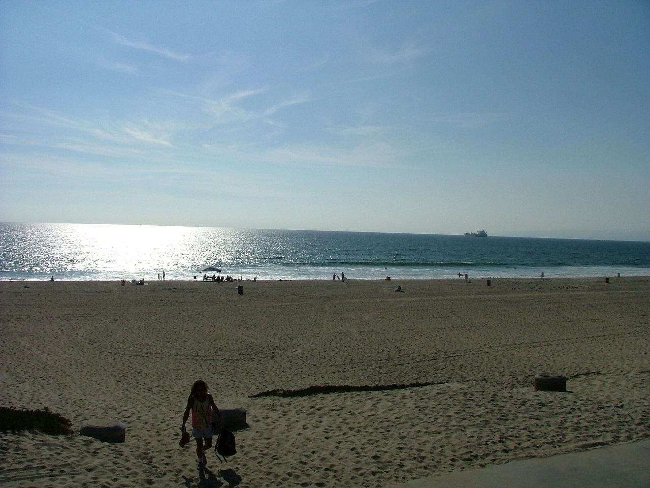 旅2004年 (Journey 2004) CA:マンハッタンビーチ マンハッタンビーチ(Manhattan Beach)は、カリフォルニア州にある市で、ロサンゼルス国際空港(LAX)の南に位置します。ビーチバレーで知られていて、見渡す限りビーチバレー用のネットが続いています。試合が行われていなければ、自由に使うことができます。写真は、マンハッタンビーチ沖サンタモニカ湾(太平洋)を航行する貨物船。