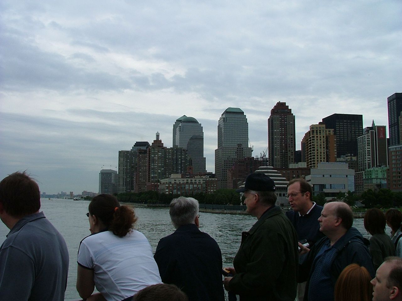リバティー島(Liberty Island)へはマンハッタンの南端のバッテリーパーク(Battery Park)からフェリーでアクセスします。フェリーに乗って15分。バッテリーパーク(Battery Park)で往復のフェリー切符兼リバティー島へのチケットを購入します。写真は、マンハッタン(Manhattan)の西側、ハドソン川からのマンハッタン。