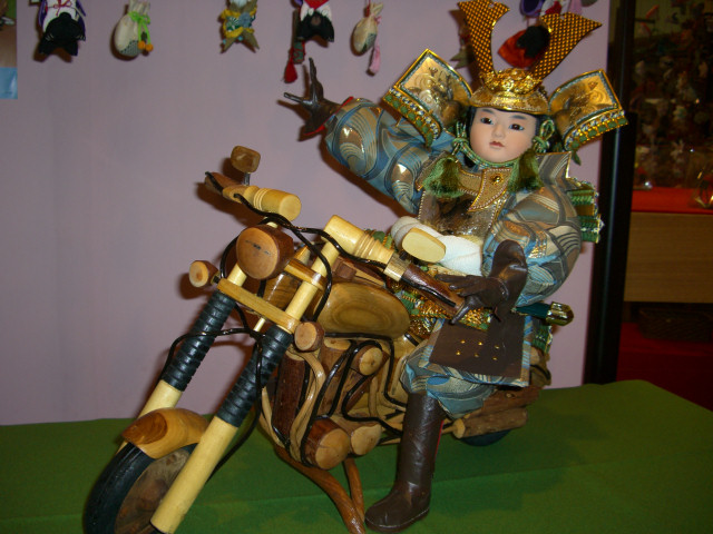 静岡市内の人形製造元が製作した、駿河雛具の五月人形や、つるし飾りが展示されていました。 駿河雛具は、16世紀、今川氏が現在の静岡県の駿河の大名であった時代にすでに生産されていたそうです。久能山東照宮や浅間神社の造営等により、江戸時代に漆器作りの一分野として雛具作りが発達したそうです。静岡が雛具の全国的な産地として知られるようになったのは大正12年頃だそうです。関東大震災により罹災した東京の職人が静岡へ移り住み、1931年(昭和6年)ころに人形師を招き、技術を導入して本格的な生産が始まったそうです。1994年(平成6年)に国の伝統的工芸品に指定されたそうです