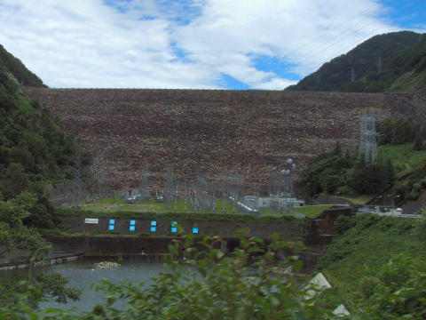 中心部を粘土、両脇を砂や砂利、外郭部を岩石で覆う3層5重に分かれた構造をしています。地盤が堅固でなく、コンクリートダムの建設が困難な場合に建設される事が多いダムだそうです。